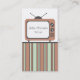 A set of 100 business cards featuring an illustration of a retro tv set in mauve on front. Green, grey, and mauve striped design under tv set. Personalize with your name and title on TV screen. Opposite side features striped designon left side. Personalize the grey text at right with your contact information.