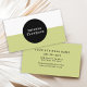 Retro styling highlights this custom business card design in two-tone colour block. Colours include lime green and white with contrasting black circular frame surrounding your text. This versatile design is a wonderful choice for many professions. Personalize the text template on both sides of this card with your details.