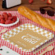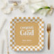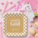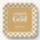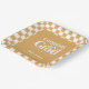 Congrats Grad. Retro Type Graduation Party paper plates. Features, retro typography in white on rustic yellow background colour and coordinating chequered pattern border.