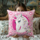 Retro Unicorns and Daisies Pattern on Pink Throw Pillow