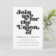 Retro inspired font "Join us for the union of", in editable colours.