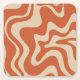 Retro Vibe Liquid Swirl Abstract Pattern Orange Square Paper Coaster