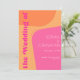 Abstract shapes retro vintage 70s style unique wedding invitation with "the wedding of" bold typography in a vibrant trendy modern hot pink magenta and orange chic colour palette. +++++++ Please note that all the colours are changeable. ++++++++++++ The invitation is suitable for casual stylish contemporary weddings.