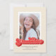 This fun single photo graduation announcement features the word graduate written in a retro style script in shades of red. The back of the card has a colour coordinating diagonal stripe pattern.