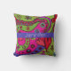 Retro Vibrant Hearts and Flowers Colourful Throw Pillow