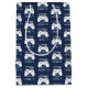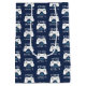 Designed to match our Level Up birthday party invitations and accessories, this retro gamer themed gift bag features a pattern of game controllers on a navy blue background with "[Name] has reached level [age]" in vintage digital style lettering.