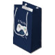 Designed to match our Level Up birthday party invitations and accessories, this retro gamer themed gift bag features a game controller illustration on a navy blue background with "[Name] has reached level [age]" in vintage digital style lettering.