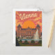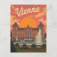 This striking poster captures the elegant architecture of Vienna, Austria, in a vintage-style illustration. It features a grand palace and a large, ornate fountain set against a dramatic, cloudy sunset. The warm colour palette and classic, handwritten "Vienna" typography give it the feel of a retro travel advertisement, making it a perfect piece for anyone who loves European history or vintage art.
