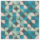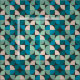 This mid-century modern pattern features turquoise and green geometric shapes.
