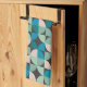 This mid-century modern pattern features turquoise and green geometric shapes.