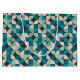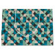 This mid-century modern pattern features turquoise and green geometric shapes.