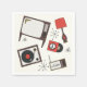 Retro, vintage household items, such as : televisions, records, record players, radios, & lamps on paper napkins. Fun for a retirement party or any occasion.