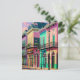 A vibrant and colourful illustration of a charming street in New Orleans, Louisiana, featuring rows of colourful Creole townhouses. The buildings are painted in bright shades of pink, yellow, green, and blue, with intricate wrought iron balconies and ornate detailing. The street is lined with lampposts and bustling with activity, with people walking along the sidewalk and enjoying the lively atmosphere.
