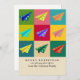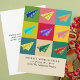 Send warm holiday wishes with timeless charm using this Retro Vintage Christmas Card. Featuring retro coloured squares with colourful paper airplanes designed with Christmas trees. Below the image sits the text "Merry Christmas and Happy New Year" andacustomizable option to add your family name. This nostalgic design captures the magic of a bygone era with a travel flair.