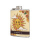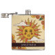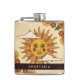 This custom hip flask features retro vintage sun celestial design with your name in sans serif typography.