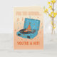 Celebrate their special day with a spin! This retro-themed birthday card features a classic blue suitcase-style turntable with a festive party hat riding the vinyl record. Surrounded by colorful confetti and music notes on a warm, vintage-textured background, the playful pun "For the record... you're a hit!" makes it the perfect greeting for any music enthusiast or vinyl collector.