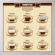 Coffee chart visual with espresso, doppio, americano, cappuccino, latte, macchiato, glace, mocha, and irish coffees.