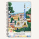 Retro Watercolor Barcelona Spain Travel Keepsake Notebook