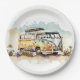 Retro Watercolor Hippie Bus With Flowers Paper Plate