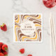 Retro flower with round frame on yellow-orange and brown wavy lines background birthday napkin.