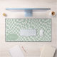 Elevate your workspace with this Modern Wavy Chequerboard Pattern Personalized Desk Mat. This mat presents a playful twist on a classic chequerboard, brought to life with an undulating wave pattern in shades of mint green and cream. The personalized feature offers an extra touch of individuality, making your workspace truly your own. Its design effortlessly combines a modern aesthetic with a touch of whimsy, transforming any desk into a statement piece. Ideal for personal use or as a unique gift, this desk mat is an excellent fusion of fun and functionality. Personalize this custom design with your own name.