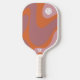 This modern pickleball paddle design features a retro wave design in orange and purple, with your initial in bold white text for a look that is simple and stylish, yet professional.
