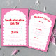 Get the party started with our vibrant bachelorette party invitation! Featuring a trendy wavy arch design in striking red and pink hues, this invite sets the stage for a fun-filled weekend. The retro font adds a touch of nostalgia, perfect for a stylish celebration. Impress your guests with a detailed itinerary included, ensuring they don't miss a beat. Order this must-have invite for your ultimate bachelorette bash and let the good times roll!