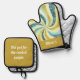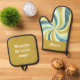 Retro Wavy Blue And Golden Colour Pattern Oven Mitt & Pot Holder Set