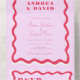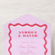 Retro Wavy Frame Pink and Red QR Code 70s Wedding All In One Invitation