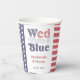All-American "Wed White And Blue" paper cups, incorporating the Stars and Stripes. This retro lettering design would work especially well for an outdoors event eg grill or cookout, whether a couples wedding shower or a backyard wedding.
