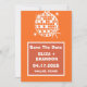 Retro, vintage, groovy, disco ball, orange and brown, typography, photo save the date. You can personalize it with your details.
