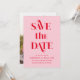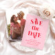 The Retro Wedding Save The Date Photo Invitation radiates groovy vibes with its vibrant pink and red colour palette and playful 60s-inspired typography. It perfectly captures the essence of your love story. Ideal for a boho-chic celebration, this invitation features your favourite couple's photo and easy customization.