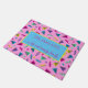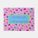 Presented here is a bright and colourful retro stytled welcome mat. An ode to the 80s this mat features a pink background with bright and colourful shapes of yellow, pink, and blue. Choose from two different sizes. Place your order today!