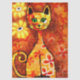 Retro Whimsical Cat Kitty Floral Yellow Red Orange