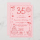 Retro Whimsical Quirky Red Pink 35th Birthday Invitation