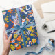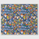 Christmas characters such as Santa Claus, an angel, a nutcracker and ballet dancer are tucked into flowers, stars, dots and candy to create a fanciful and whimsical holiday print. Merry Christmas is written in a bright white retro font.