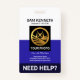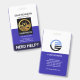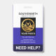 A simple white and blue columned design. Over at the top lies your prestigious name and ID number. Below this is a photo option alongside your job title underneath. The dimensions for the photo are 1,000 x 1,200 pix. This is followed by the contact details with a slogan option "Need Help?" near the base to make this badge stand out. Change the slogan remarks to suit your needs.