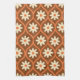 Retro White Flowers on Brown Mid Century Ogee Kitchen Towel