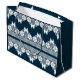 Retro white lace with butterflies on a dark blue b large gift bag