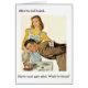 A retro housewife smiles knowingly as she cooks up what looks like some Beenie Weenies in a pot on the stove. Her husband, just home from work, leans over to take a whiff. The front of the card says, "After his skull healed, Marvin never again asked, 'What' for dinner?'" The card is blank inside for your own message.