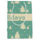 Retro Winter Trees on Turquoise With Text Band Medium Gift Bag