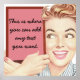 Poster featuring a vintage 1950s illustration of a woman holding a sign. Customize it with your own text and background colour by pushing the customize button. Retro cool!