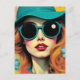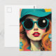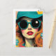 Retro Woman Matching Sunglasses and Hat Postcard