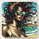 Retro Woman on Beach Comic Style Pop Art Coaster
