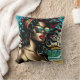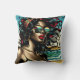 Retro Woman on Beach Comic Style Pop Art Throw Pillow