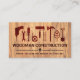 An exquisite wood grain cover features a creative wood grain handyman tools motif. Just below this design lies your business name and the contact details near the base of the card. The handyman tools represent the following equipment i.e. a hand drill, a spanner, screwdriver, measuring tape, a roller brush with a ladder, a hammer, a leaf tree for landscaping and a shovel.