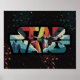 Star Wars: Logo-Mania | Colorful retro starburst featuring an X-Wing fighterjet, R2-D2, and C-3PO within the letters of the Star Wars logo.