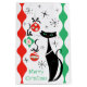 Mid-century inspired design with a retro touch featuring atomic style black cats, green and red Christmas baubles and black stars on a red, green and white patterned background. A customizable design for you to personalize with your own text, images and ideas. An original digital art image created by Jess Perry at QuirkyChic Retro.