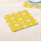 This coaster features a yellow retro geometric pattern with diamonds and stars.