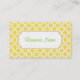A cheerful yellow and white pattern decorates this stylish business card. Customize this business card to suit your needs. Add or delete information, change the font style, font size, etc...The design is from original art. Use this stylish business card for a spa, salon, small business, home decor, event planner, child care, etc...